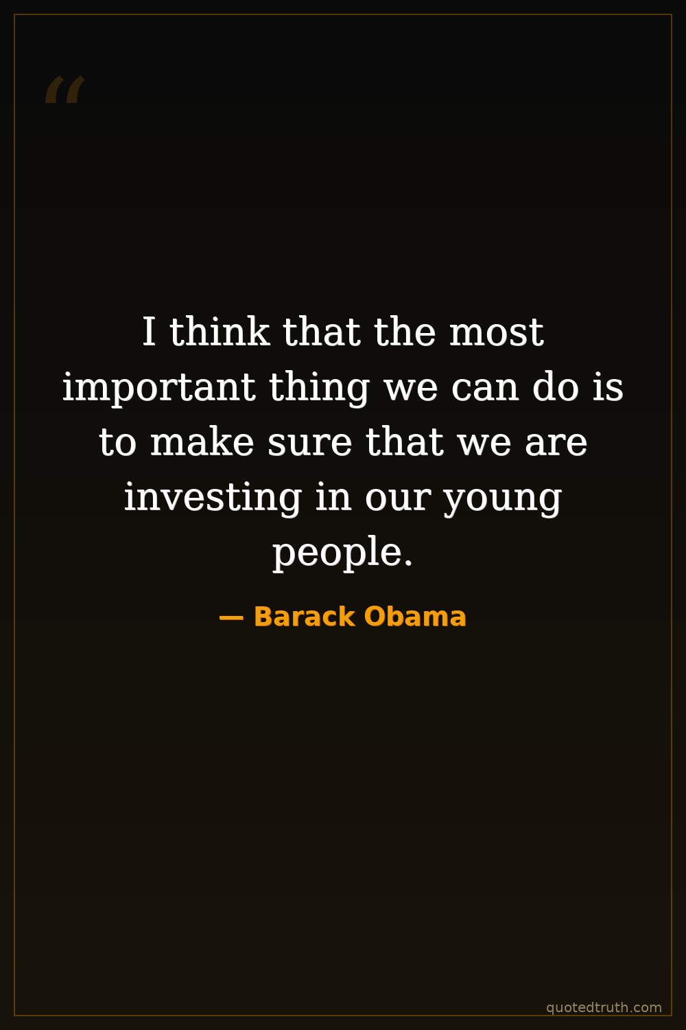 I think that the most important thing we can do is to make sure that we are investing in our young people.