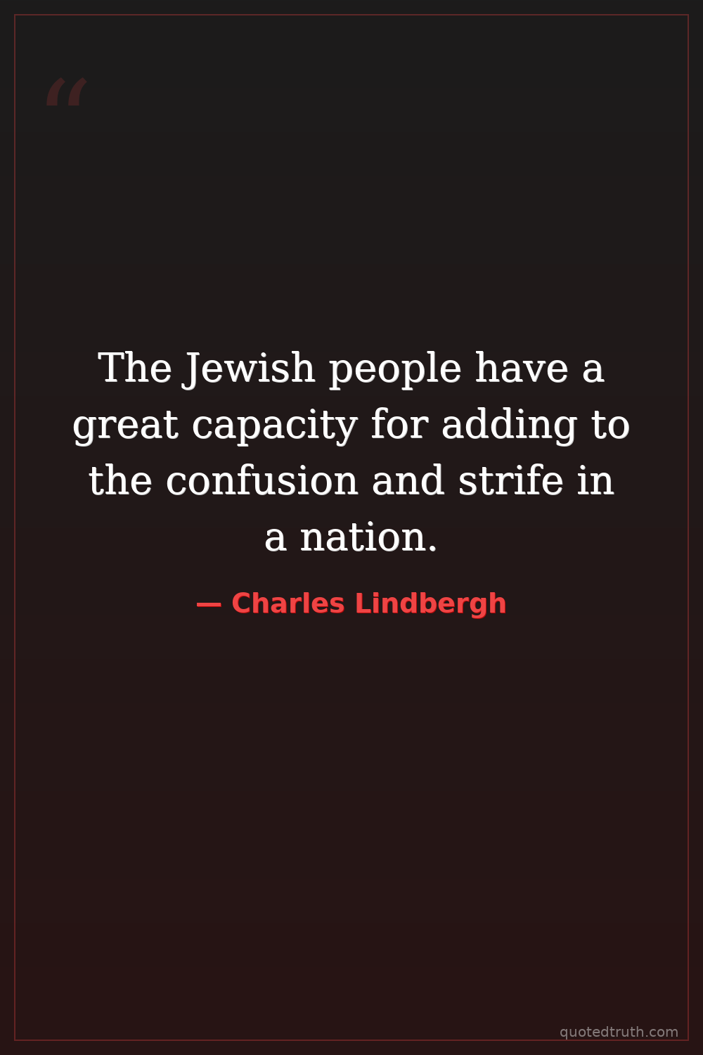 Controversial"It is not a question of whether we like the Jewish race or not; it is a question of whether we are to survive. We must protect our European blood."