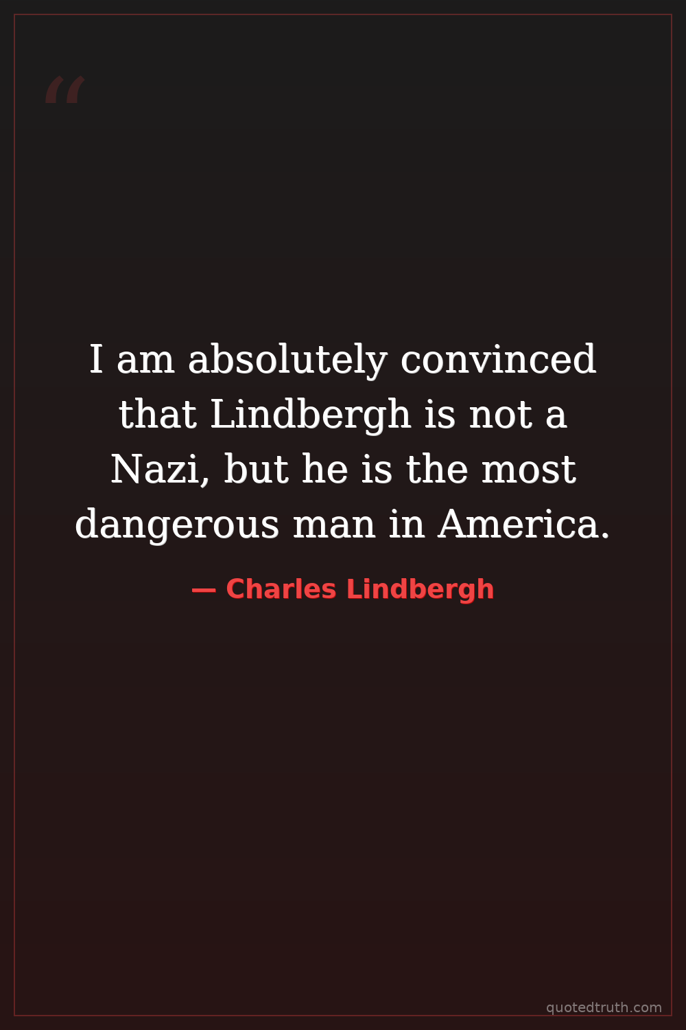 I am absolutely convinced that Lindbergh is not a Nazi, but he is the most dangerous man in America.