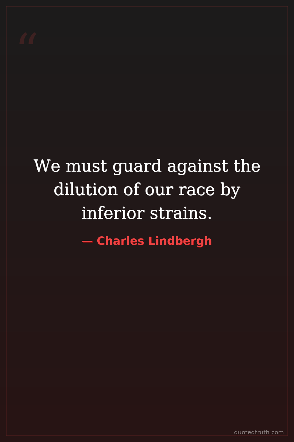 Controversial"The American people must wake up to the dangers of racial mixing."