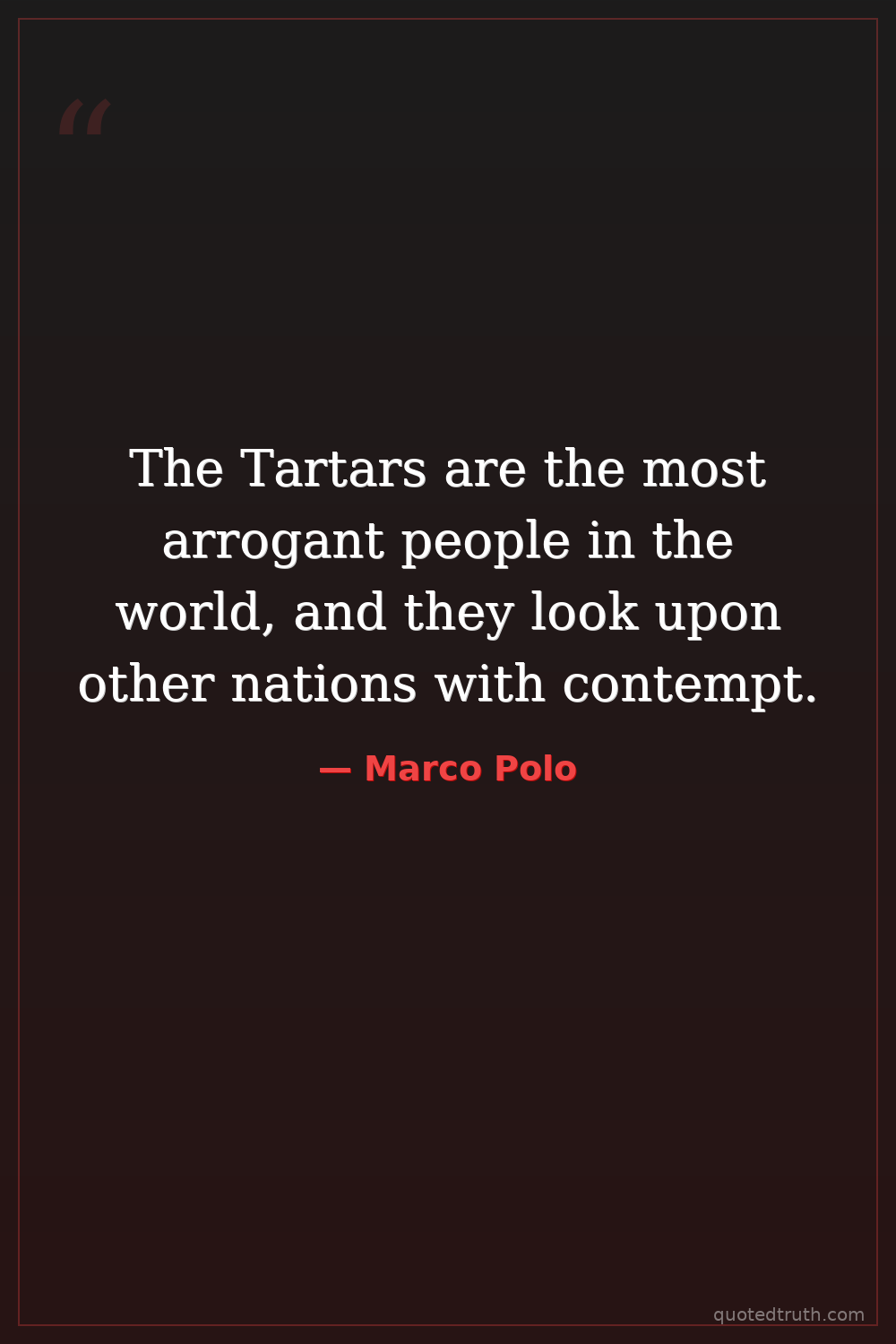 The Tartars are the most arrogant people in the world, and they look upon other nations with contempt.
