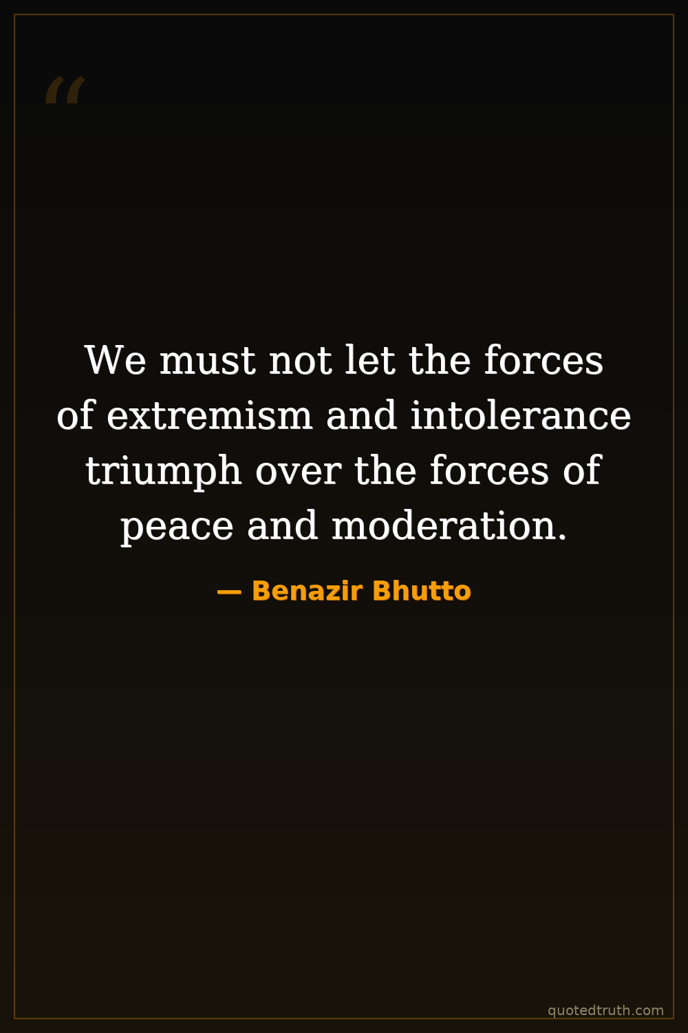 We must not let the forces of extremism and intolerance triumph over the forces of peace and moderation.