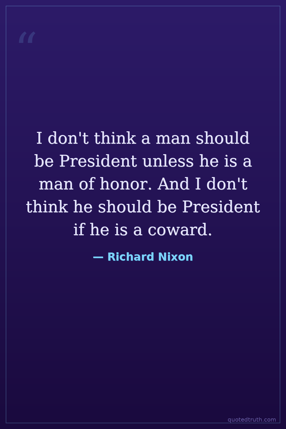 I don't think a man should be President unless he is a man of honor. And I don't think he should be President if he is a coward.