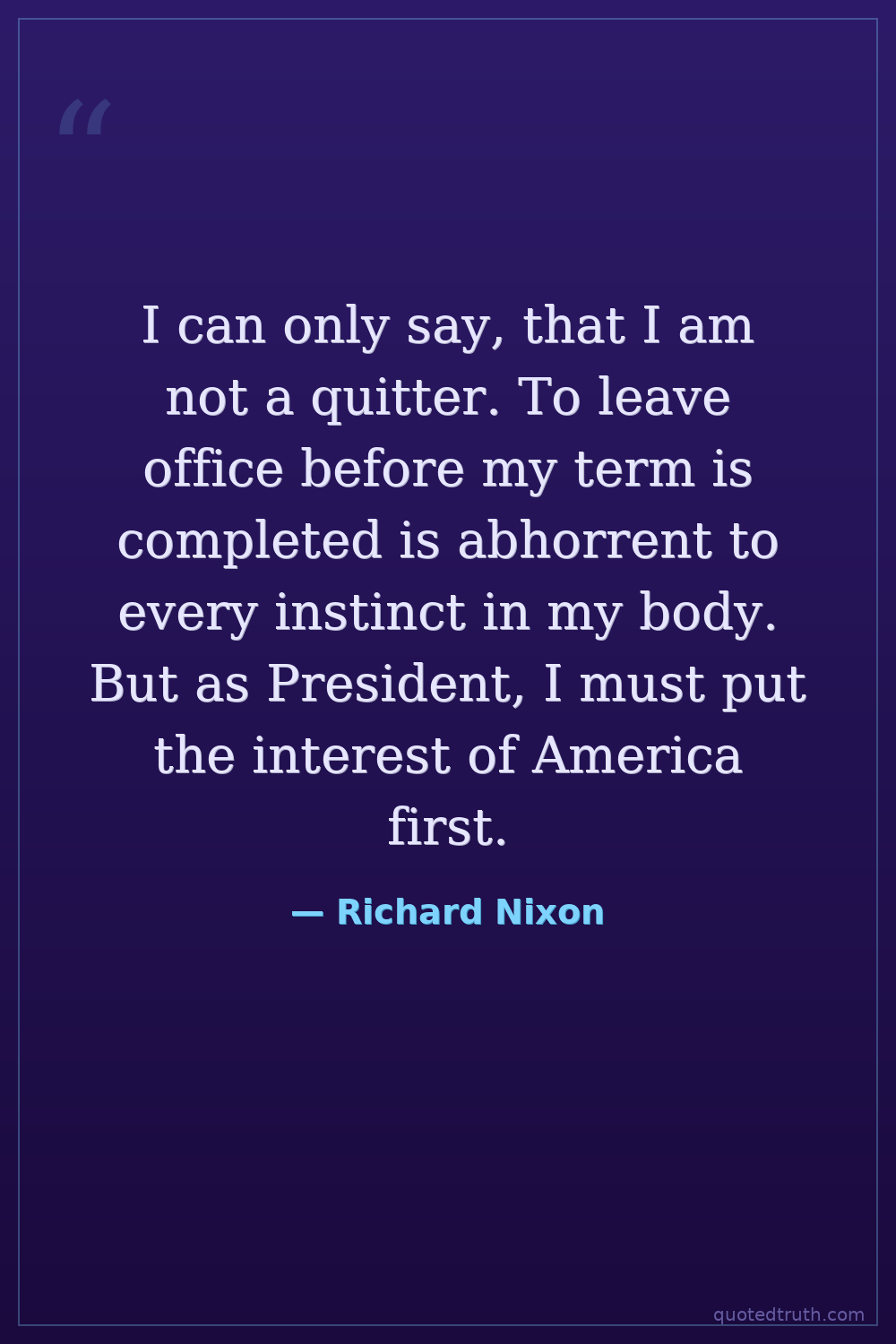 I can only say, that I am not a quitter. To leave office before my term is completed is abhorrent to every instinct in my body. But as President, I must put the interest of America first.