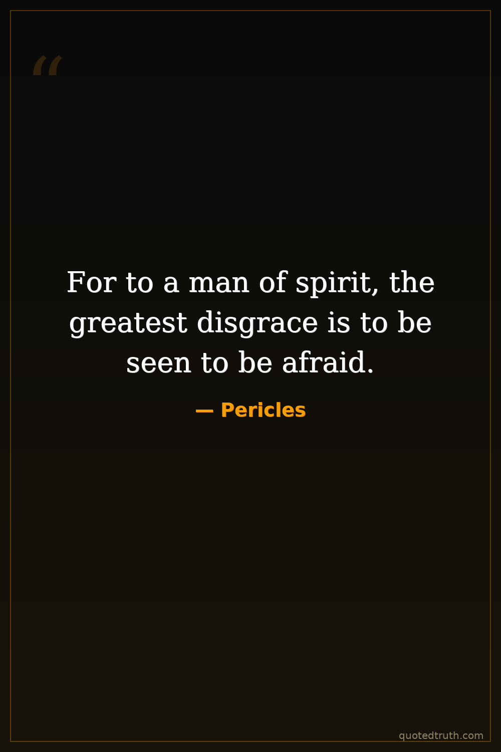 For to a man of spirit, the greatest disgrace is to be seen to be afraid.
