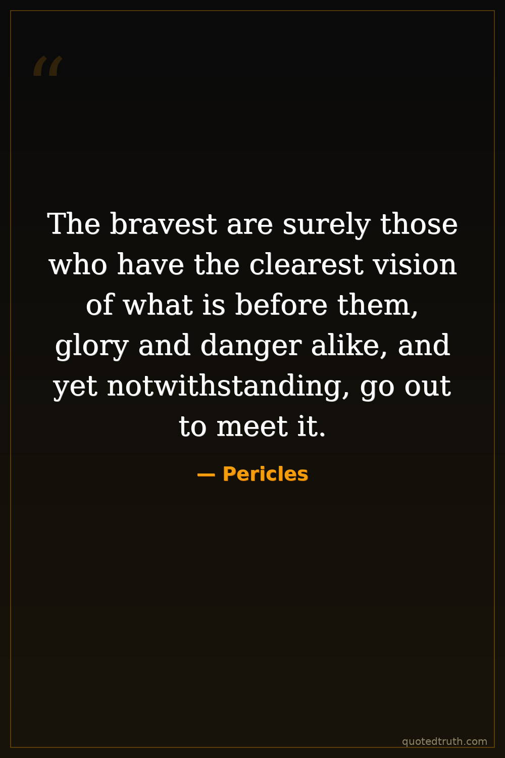 The bravest are surely those who have the clearest vision of what is before them, glory and danger alike, and yet notwithstanding, go out to meet it.