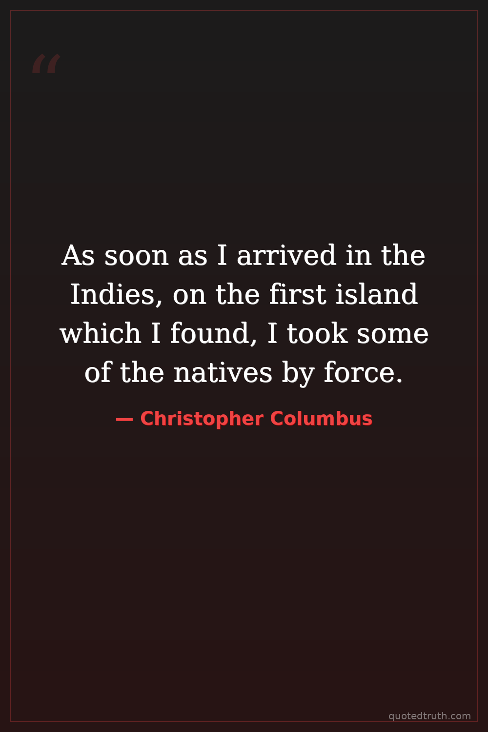As soon as I arrived in the Indies, on the first island which I found, I took some of the natives by force.