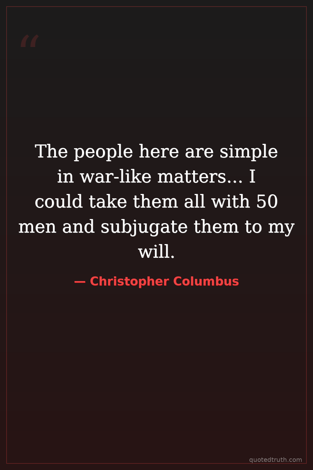 The people here are simple in war-like matters... I could take them all with 50 men and subjugate them to my will.