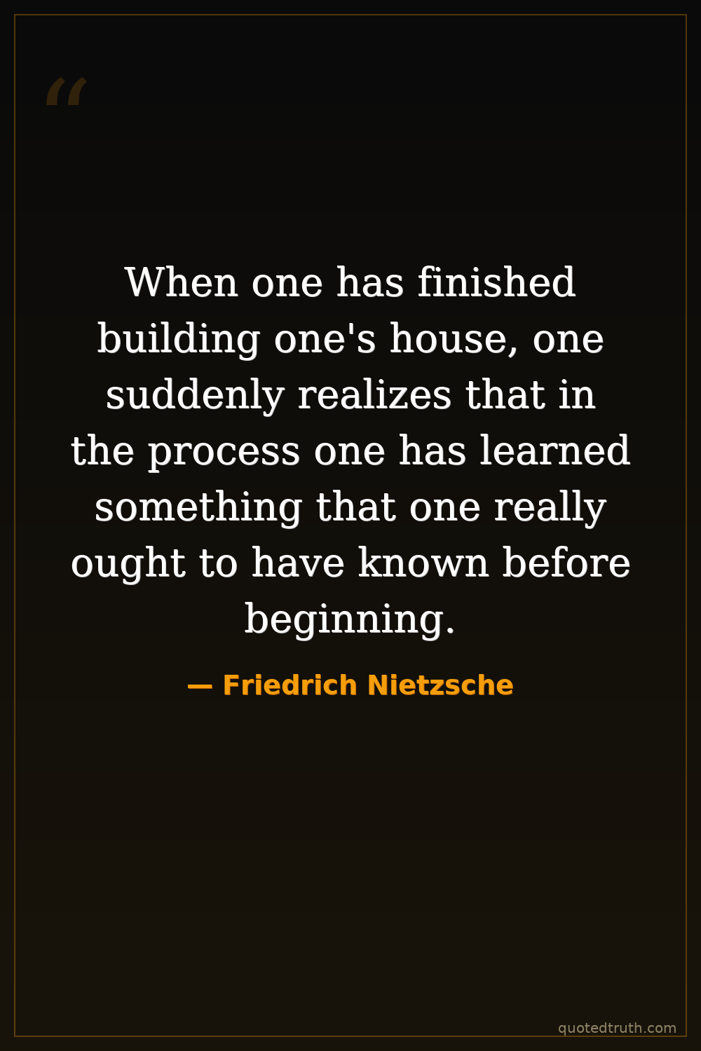 When one has finished building one's house, one suddenly realizes that in the process one has learned something that one really ought to have known before beginning.