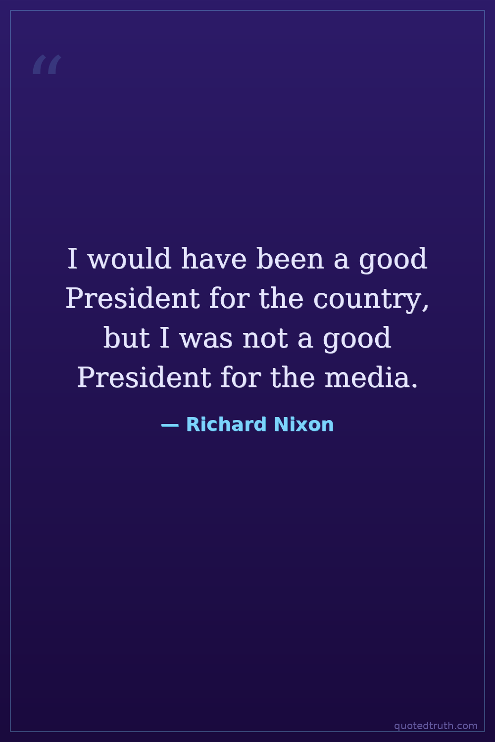 I would have been a good President for the country, but I was not a good President for the media.