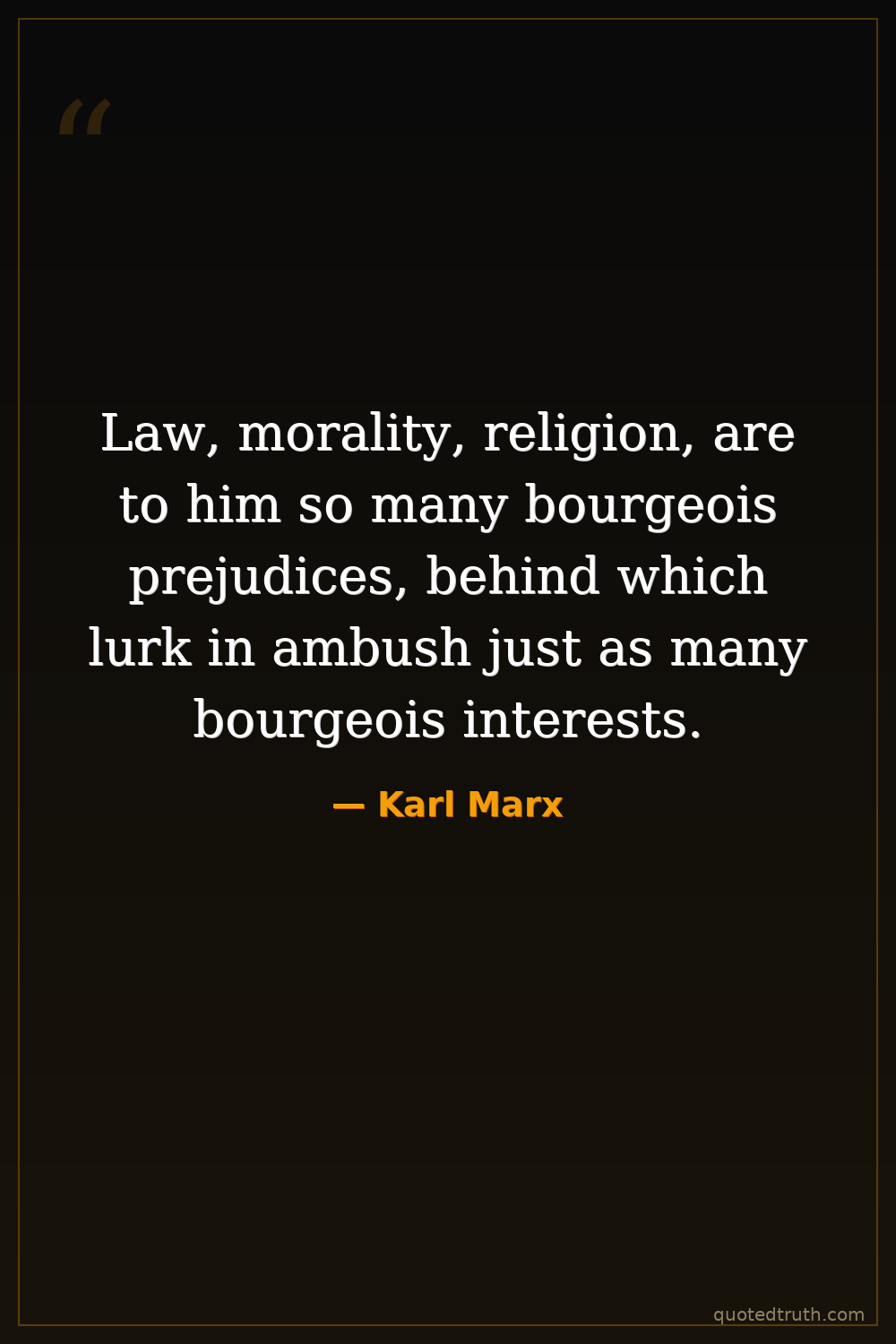 Law, morality, religion, are to him so many bourgeois prejudices, behind which lurk in ambush just as many bourgeois interests.