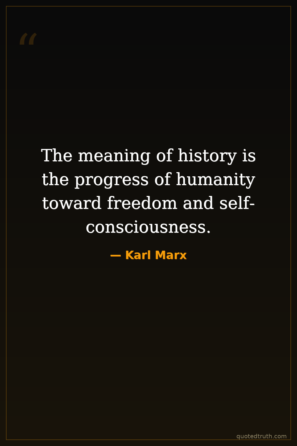 While Marx believed in historical progress and human emancipation, this specific phrasing is a generalization of his philosophical tenets, not a direct quote.