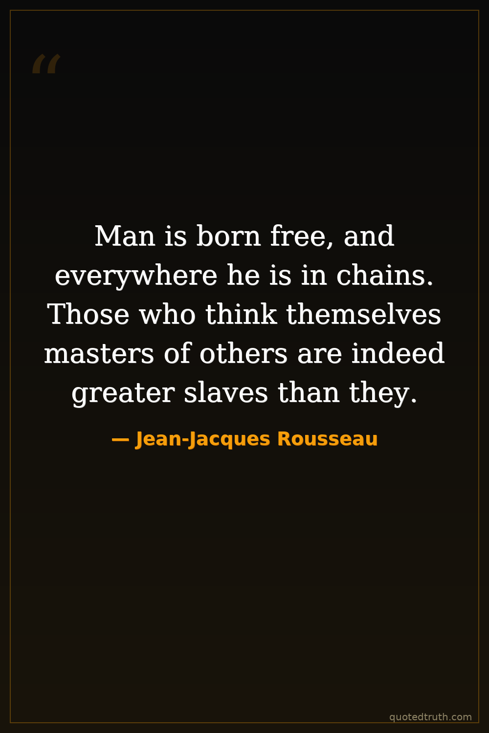 Man is born free, and everywhere he is in chains. Those who think themselves masters of others are indeed greater slaves than they.