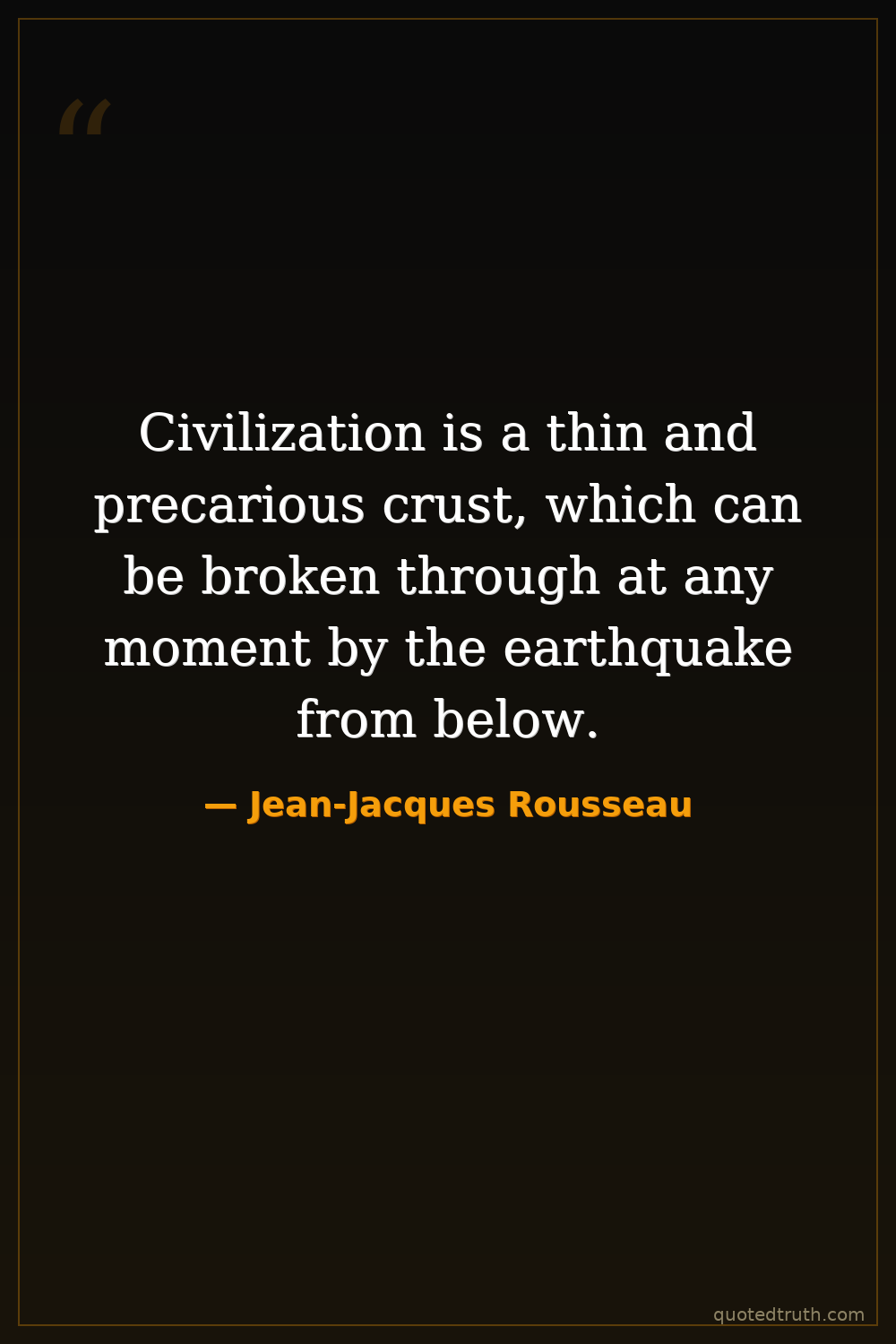 Civilization is a thin and precarious crust, which can be broken through at any moment by the earthquake from below.