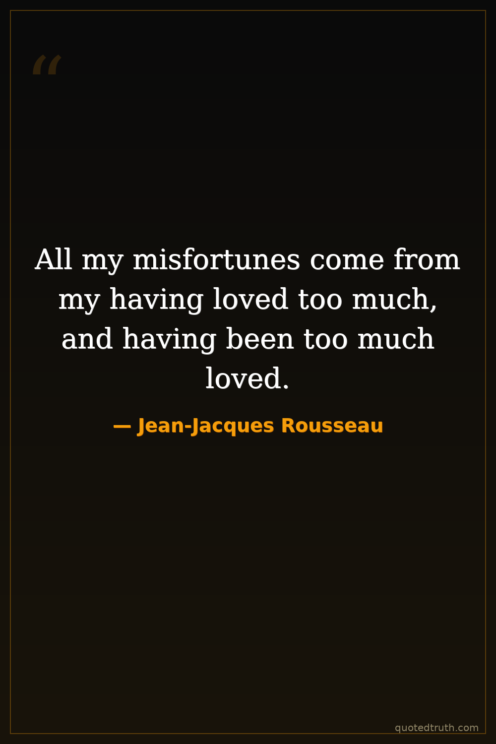 All my misfortunes come from my having loved too much, and having been too much loved.