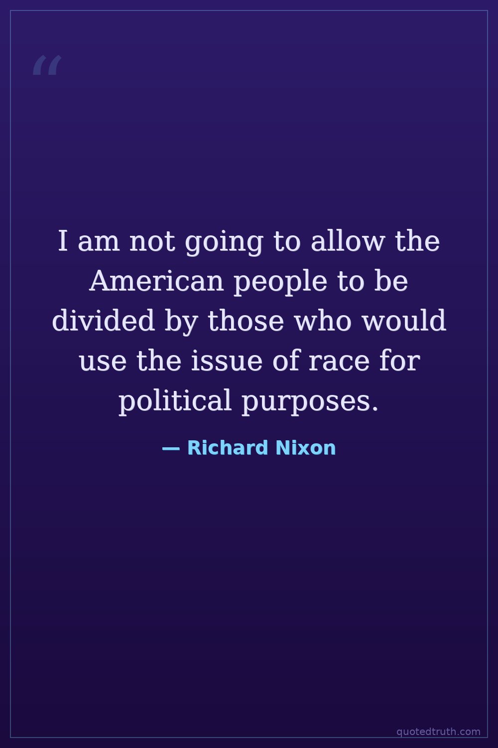 I am not going to allow the American people to be divided by those who would use the issue of race for political purposes.