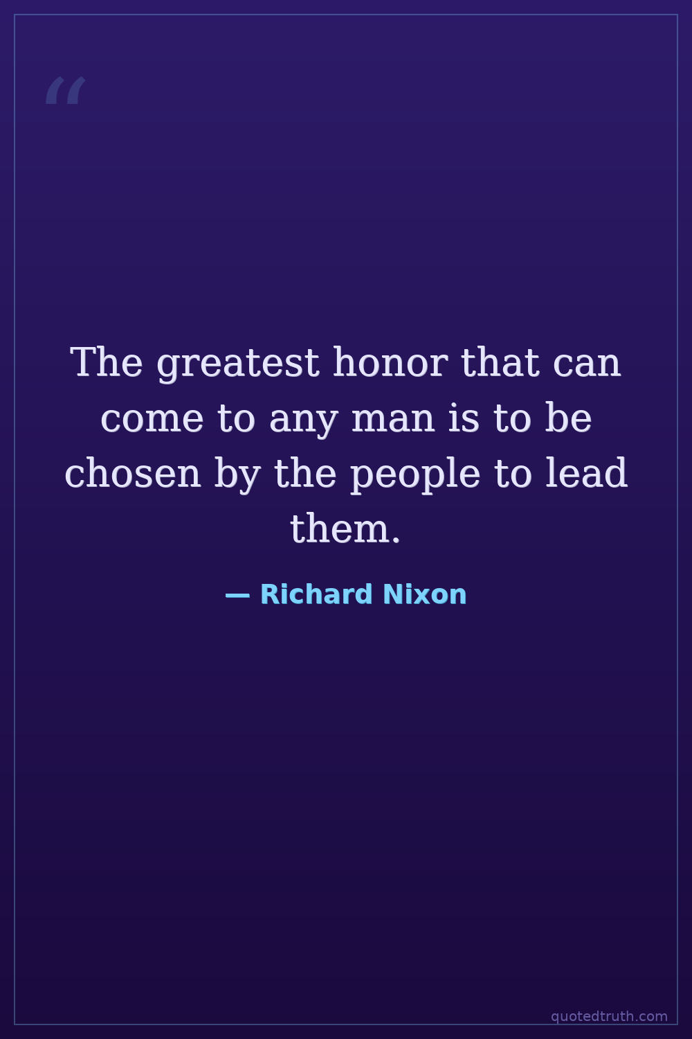 The greatest honor that can come to any man is to be chosen by the people to lead them.