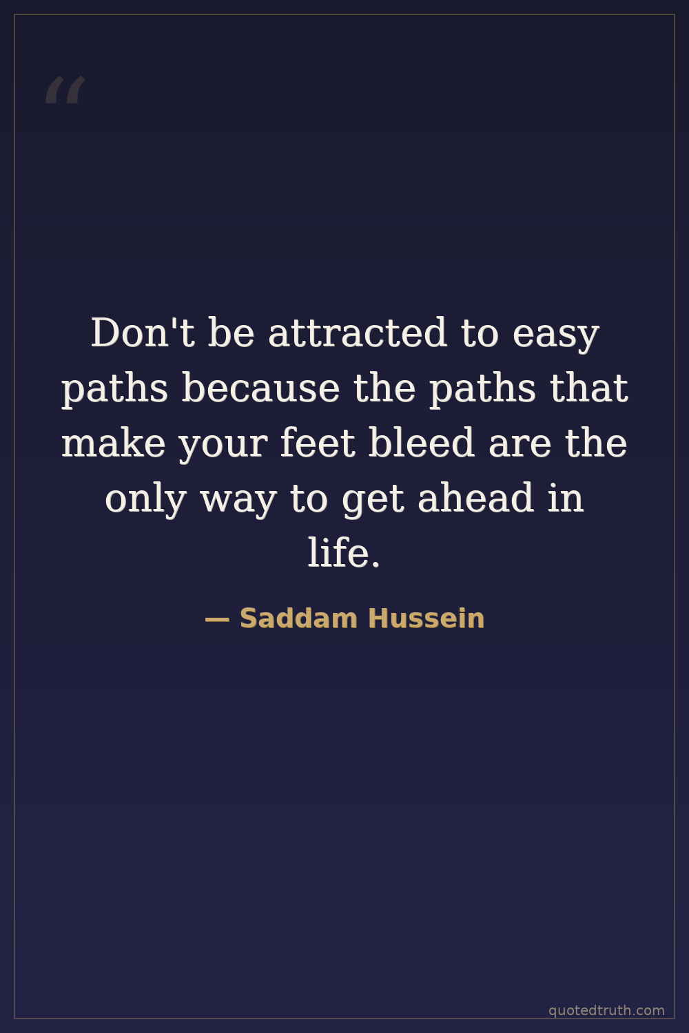Don't be attracted to easy paths because the paths that make your feet bleed are the only way to get ahead in life.
