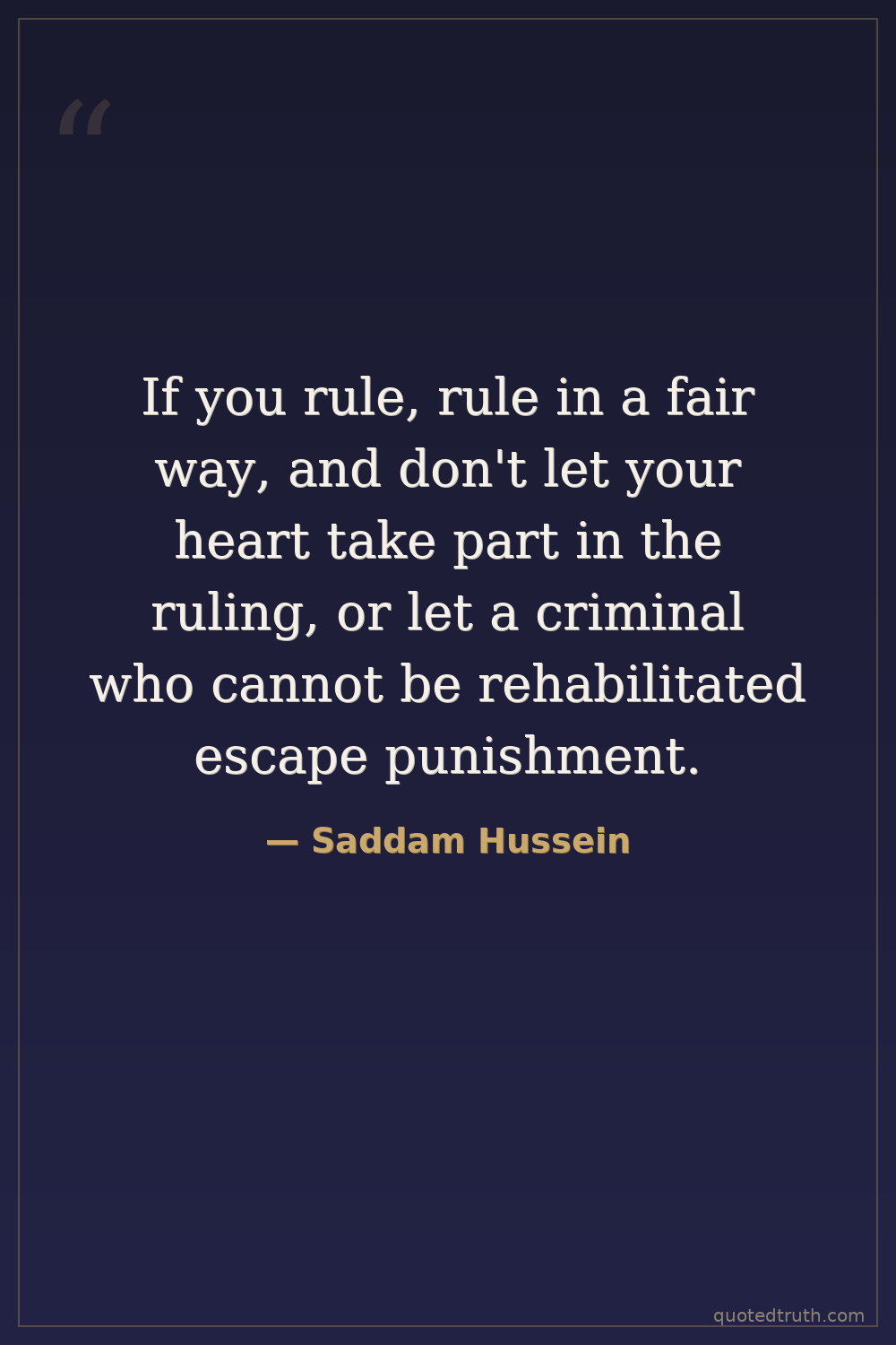 If you rule, rule in a fair way, and don't let your heart take part in the ruling, or let a criminal who cannot be rehabilitated escape punishment.