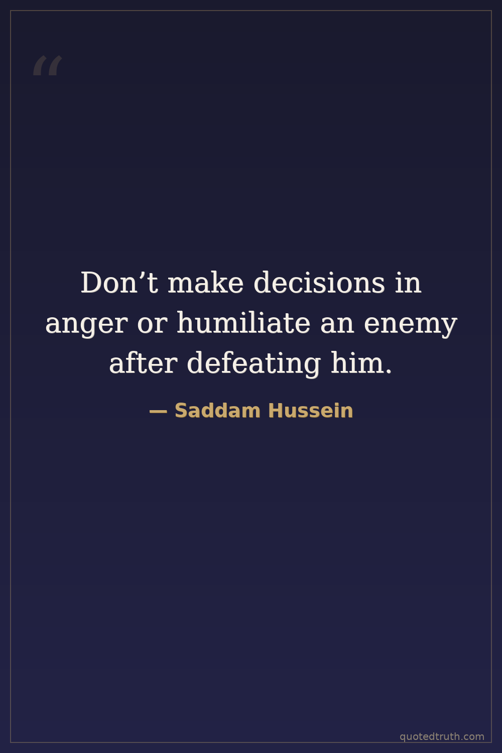 Don’t make decisions in anger or humiliate an enemy after defeating him.