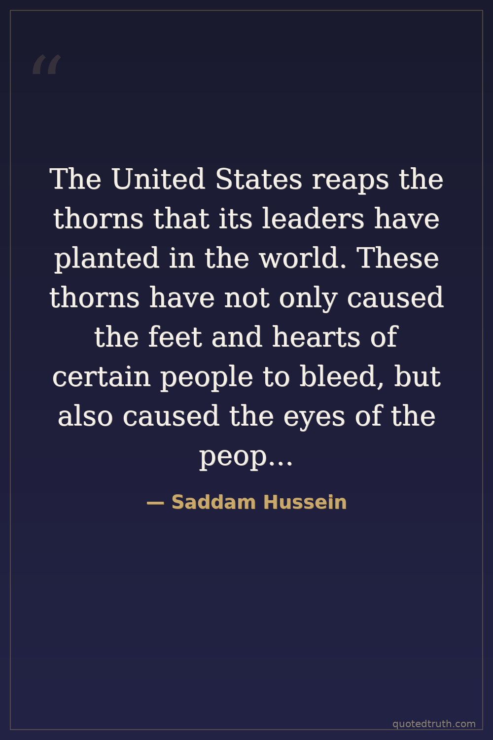 The United States reaps the thorns that its leaders have planted in the world. These thorns have not only caused the feet and hearts of certain people to bleed, but also caused the eyes of the people to bleed - those people who wept a lot over their dead.