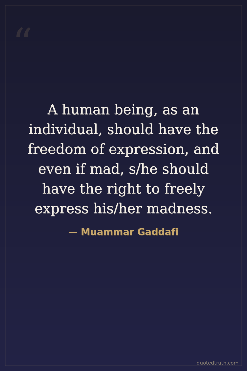 A human being, as an individual, should have the freedom of expression, and even if mad, s/he should have the right to freely express his/her madness.