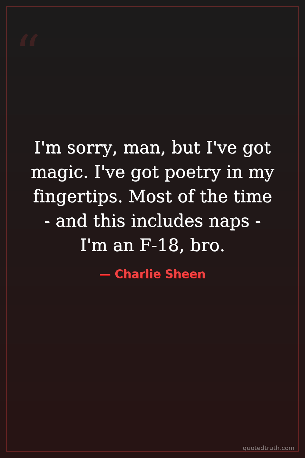 I'm sorry, man, but I've got magic. I've got poetry in my fingertips. Most of the time - and this includes naps - I'm an F-18, bro.