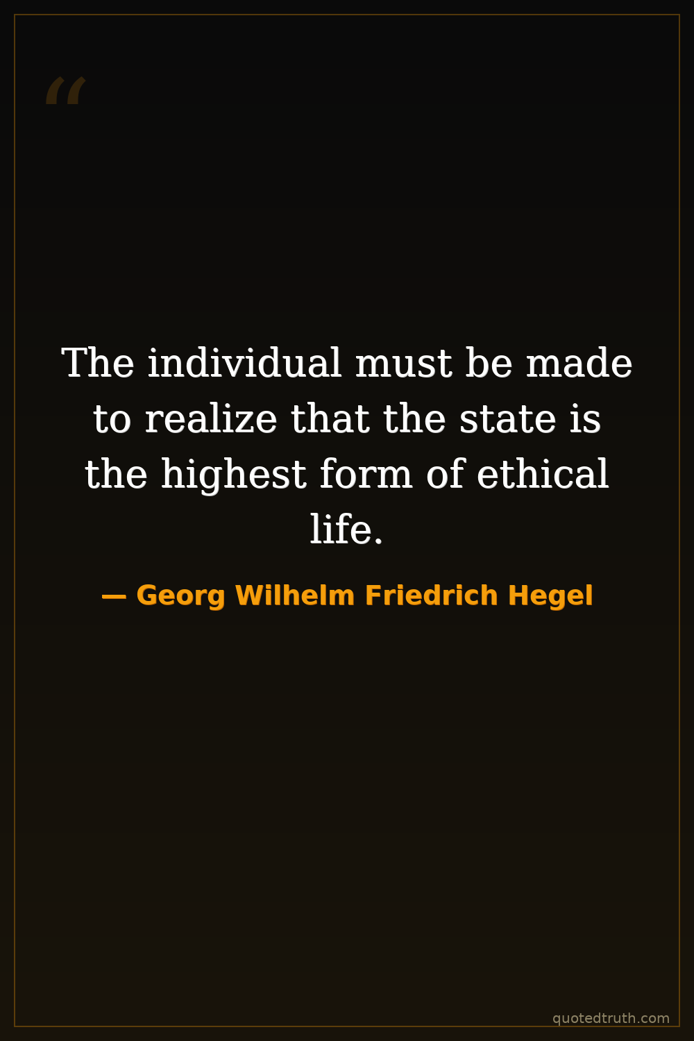 The individual must be made to realize that the state is the highest form of ethical life.