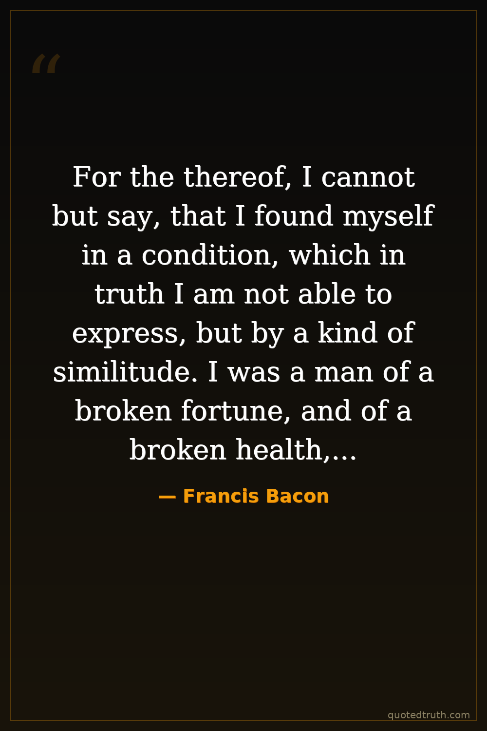 For the thereof, I cannot but say, that I found myself in a condition, which in truth I am not able to express, but by a kind of similitude. I was a man of a broken fortune, and of a broken health, and of a broken mind.
