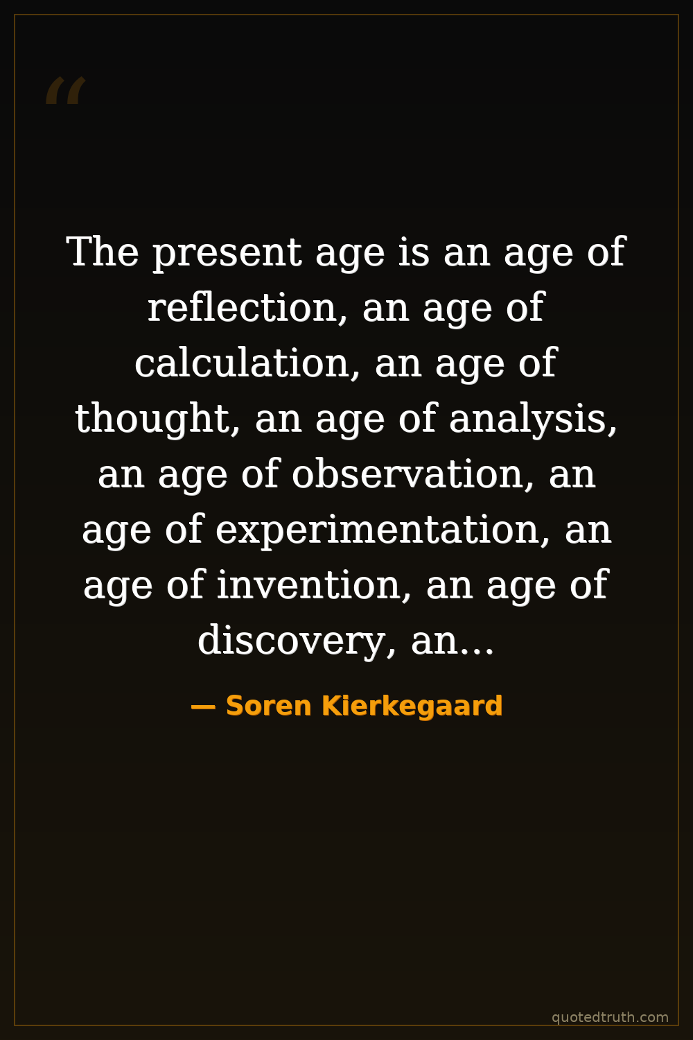 The present age is an age of reflection, an age of calculation, an age of thought, an age of analysis, an age of observation, an age of experimentation, an age of invention, an age of discovery, an age of criticism, an age of destruction, an age of dissolution.