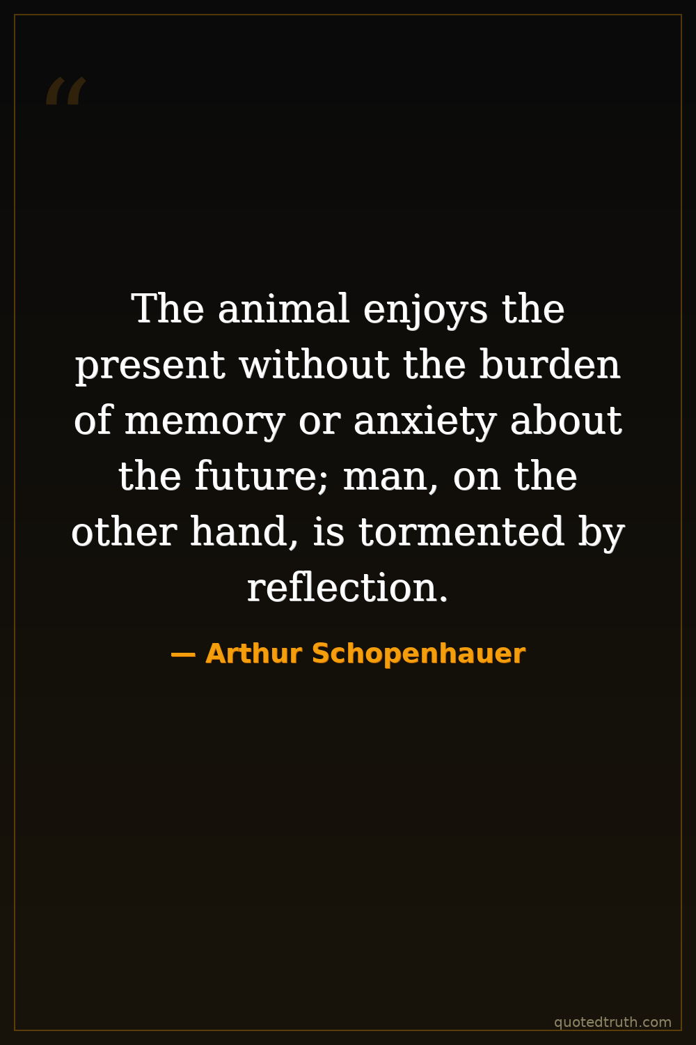 The animal enjoys the present without the burden of memory or anxiety about the future; man, on the other hand, is tormented by reflection.