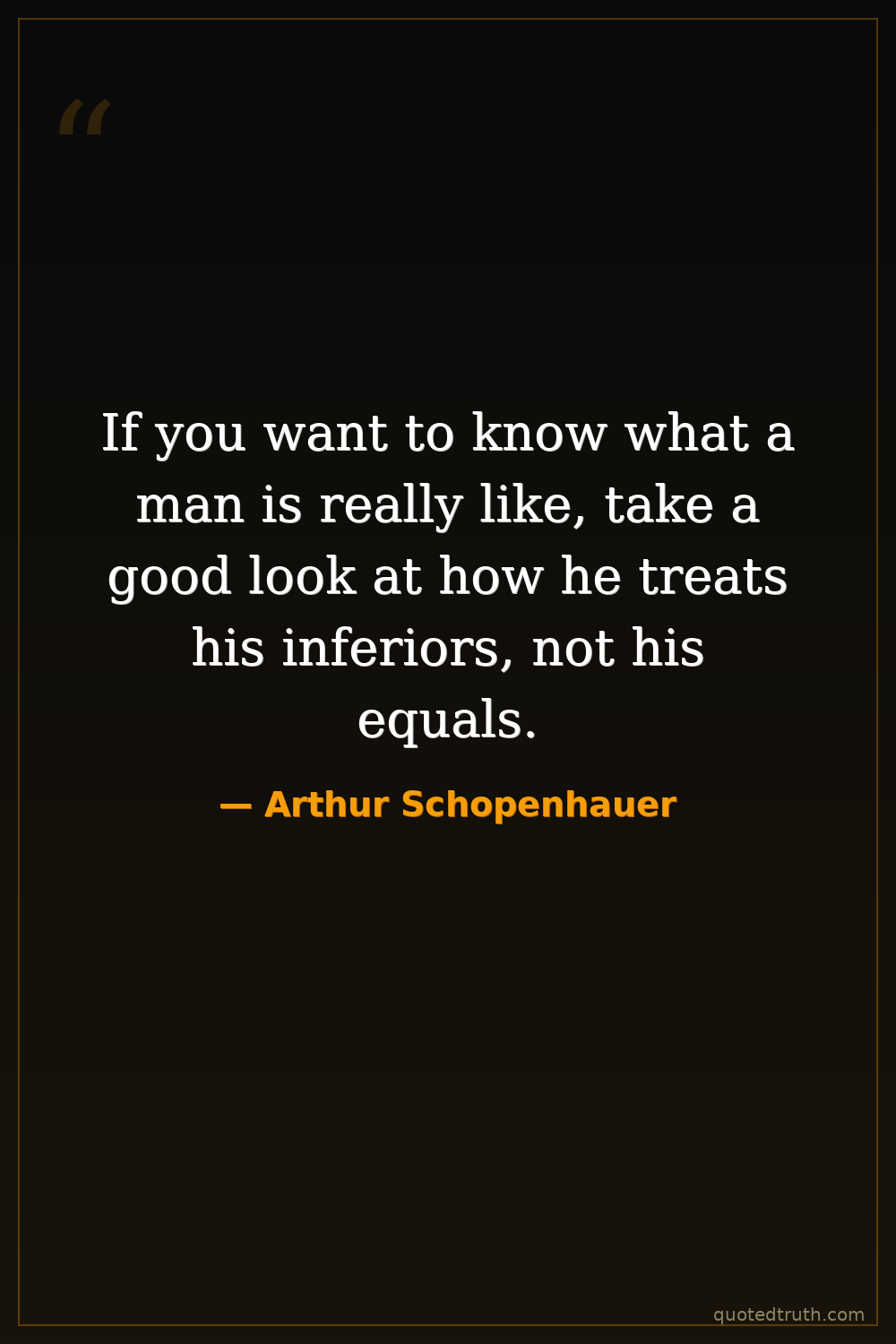 If you want to know what a man is really like, take a good look at how he treats his inferiors, not his equals.