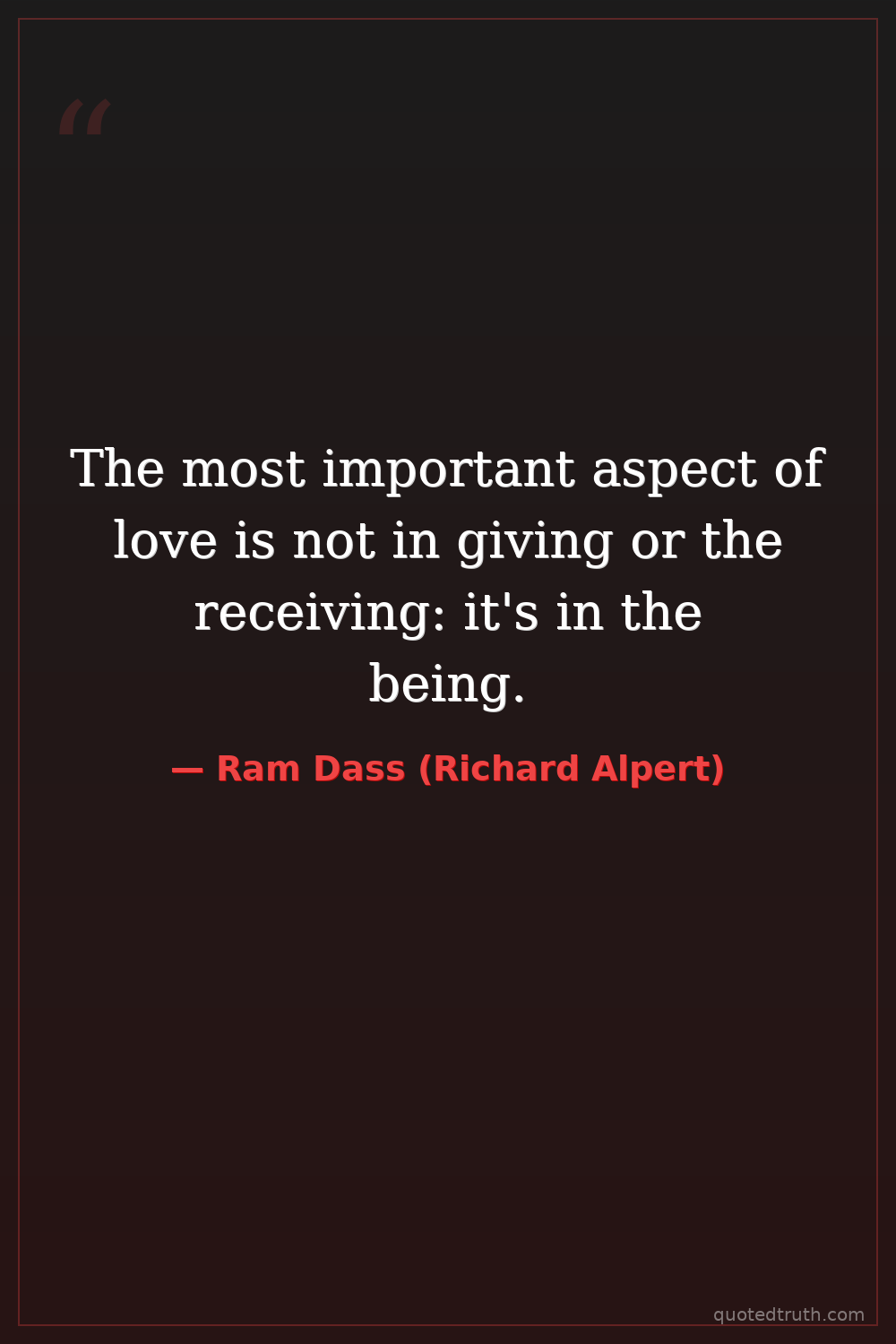 The most important aspect of love is not in giving or the receiving: it's in the being.