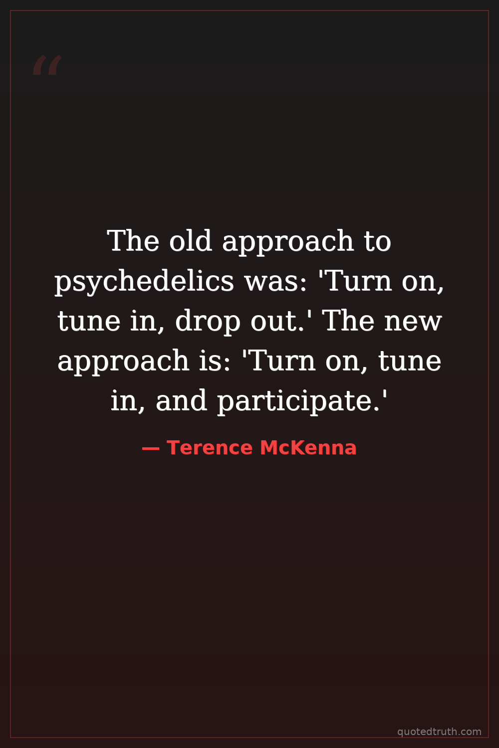 The old approach to psychedelics was: 'Turn on, tune in, drop out.' The new approach is: 'Turn on, tune in, and participate.'