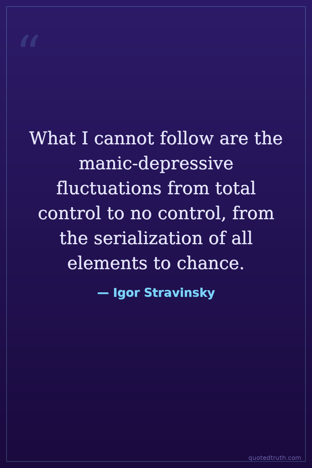 What I cannot follow are the manic-depressive fluctuations from total control to no control, from the serialization of all elements to chance.