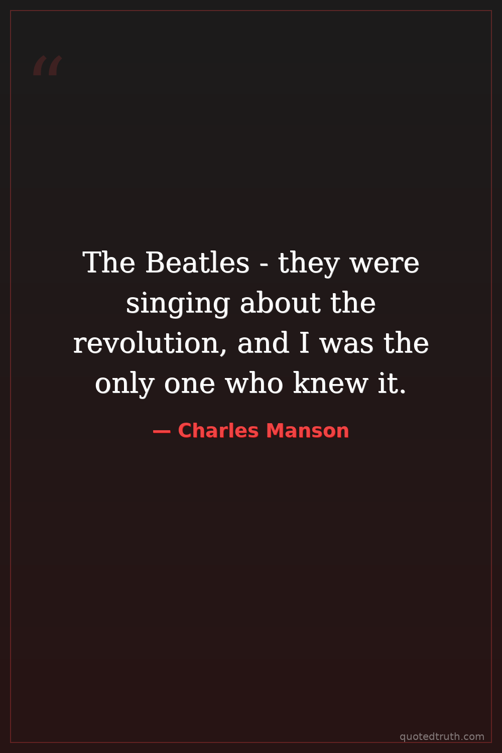 The Beatles - they were singing about the revolution, and I was the only one who knew it.