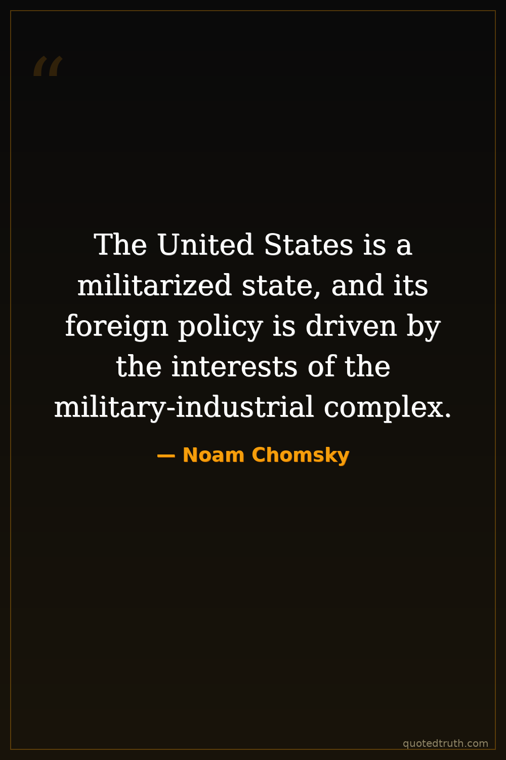 The United States is a militarized state, and its foreign policy is driven by the interests of the military-industrial complex.