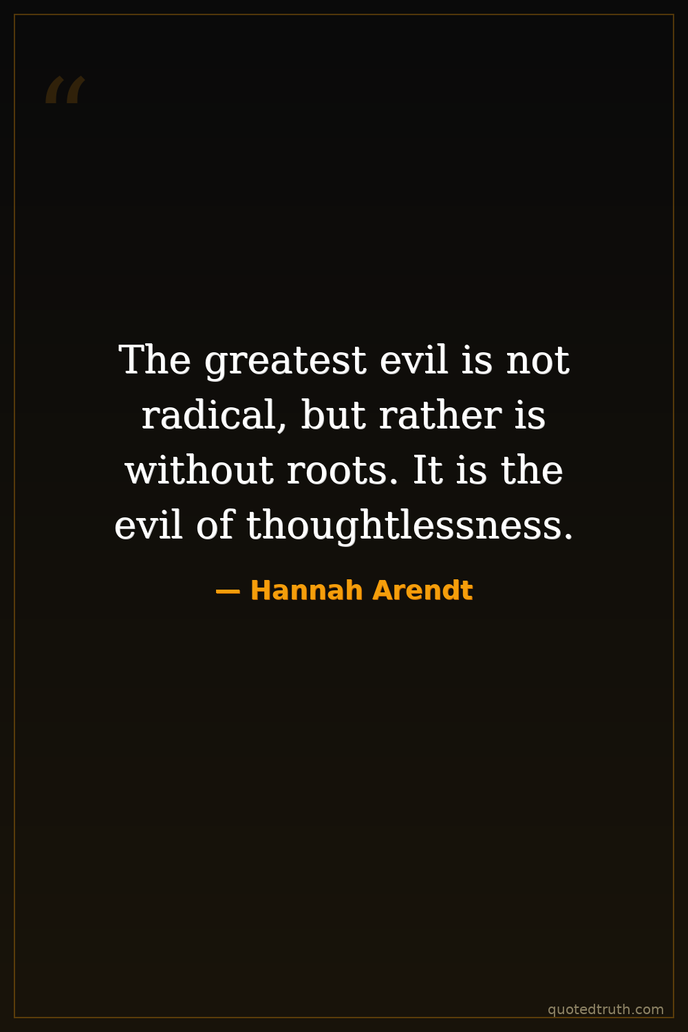 The greatest evil is not radical, but rather is without roots. It is the evil of thoughtlessness.