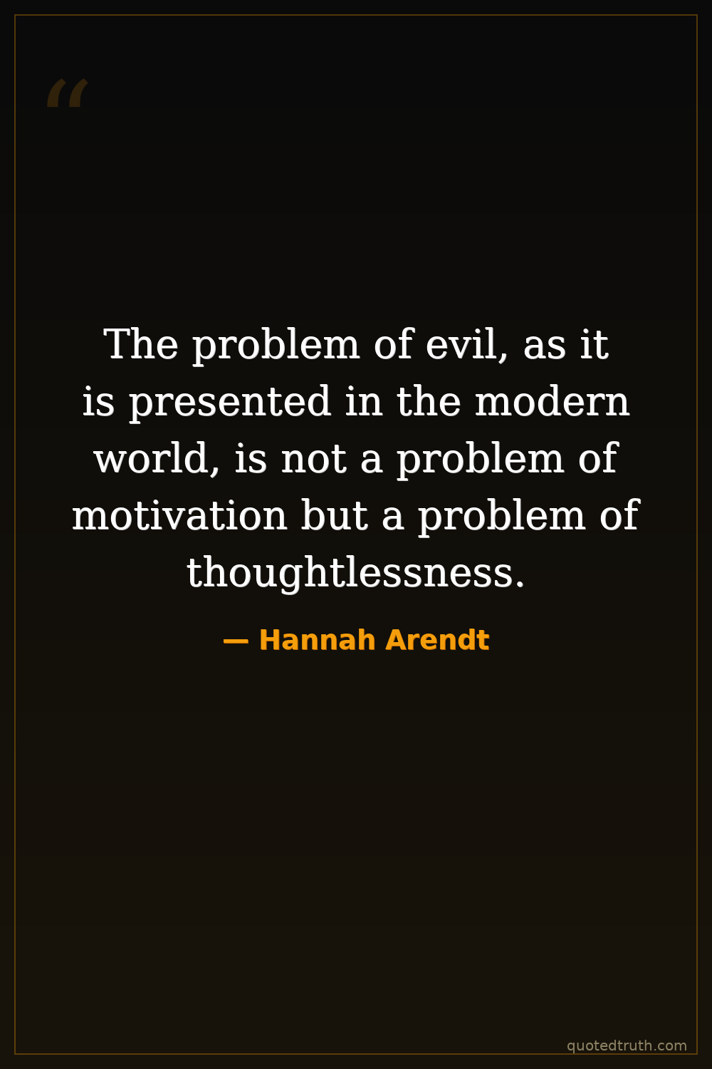 The problem of evil, as it is presented in the modern world, is not a problem of motivation but a problem of thoughtlessness.
