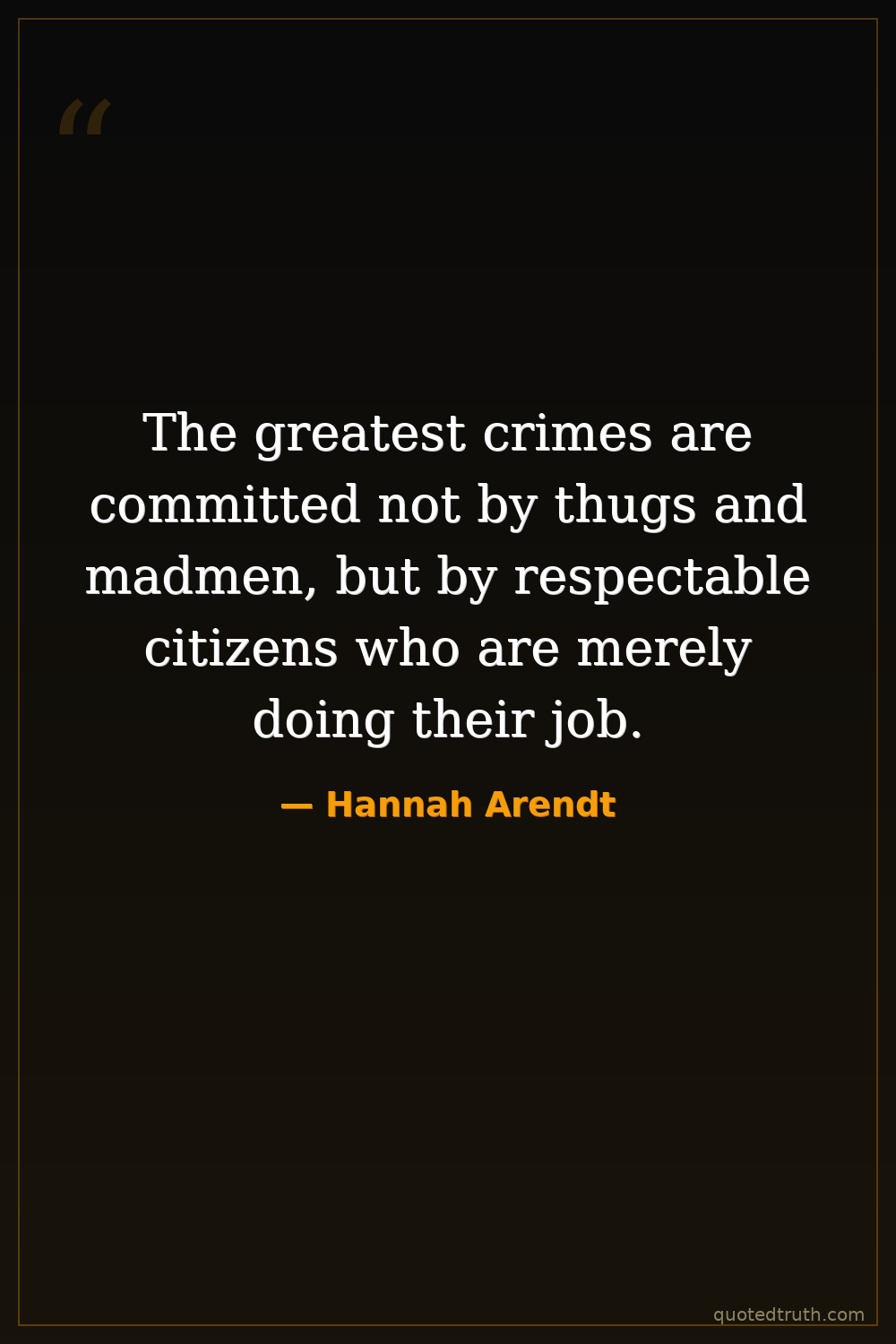The greatest crimes are committed not by thugs and madmen, but by respectable citizens who are merely doing their job.