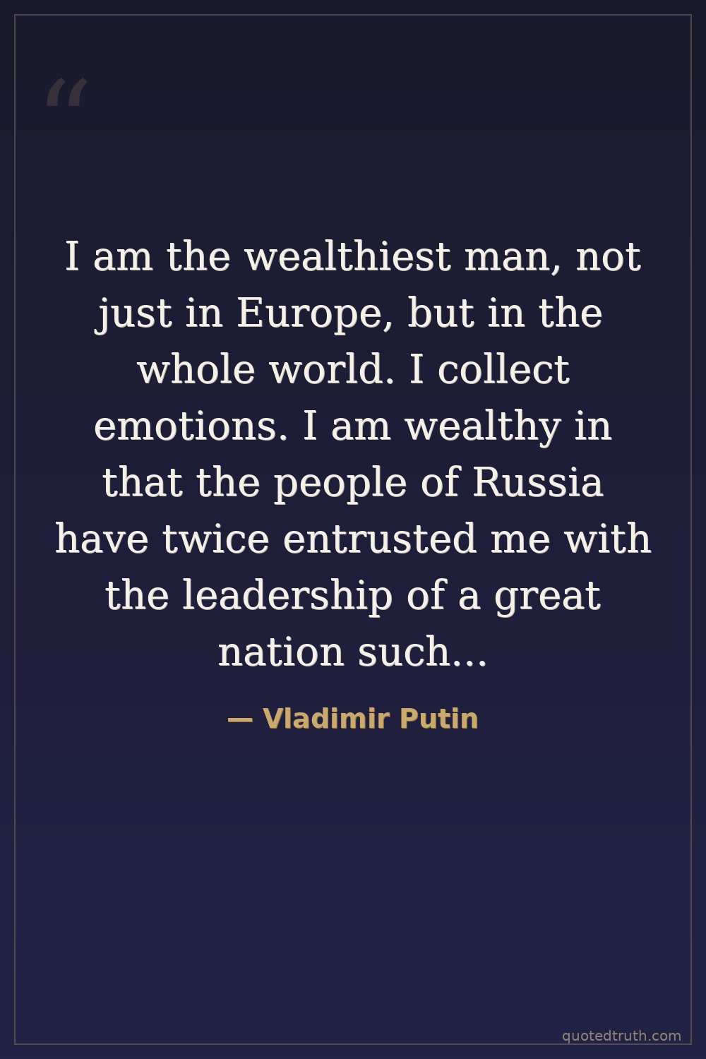 I am the wealthiest man, not just in Europe, but in the whole world. I collect emotions. I am wealthy in that the people of Russia have twice entrusted me with the leadership of a great nation such as Russia — I believe that is my greatest wealth.