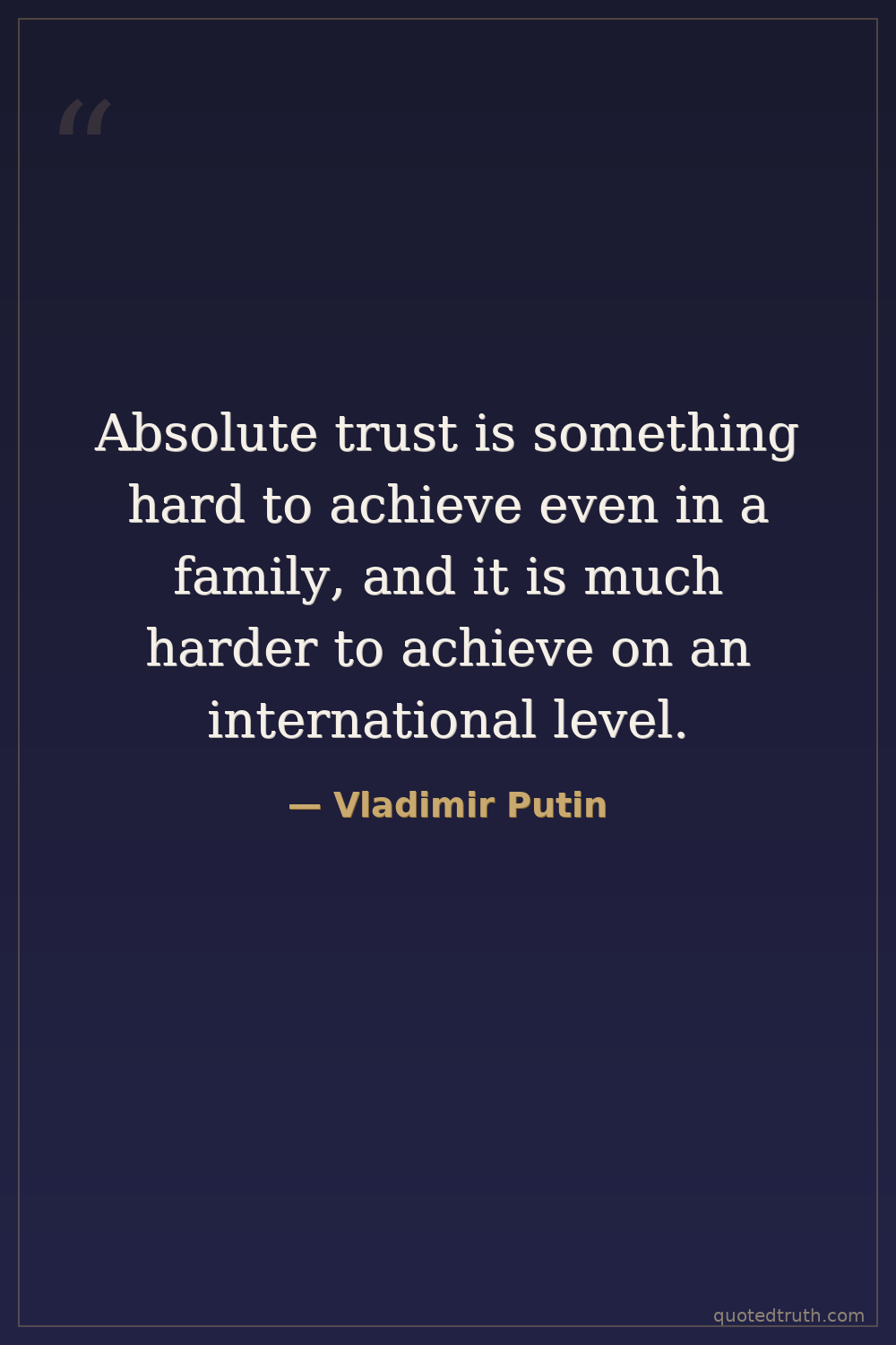 Absolute trust is something hard to achieve even in a family, and it is much harder to achieve on an international level.
