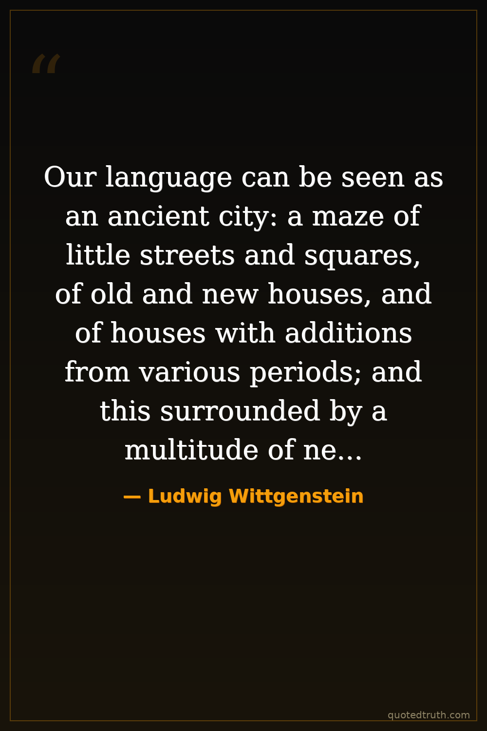Our language can be seen as an ancient city: a maze of little streets and squares, of old and new houses, and of houses with additions from various periods; and this surrounded by a multitude of new boroughs with straight regular streets and uniform houses.