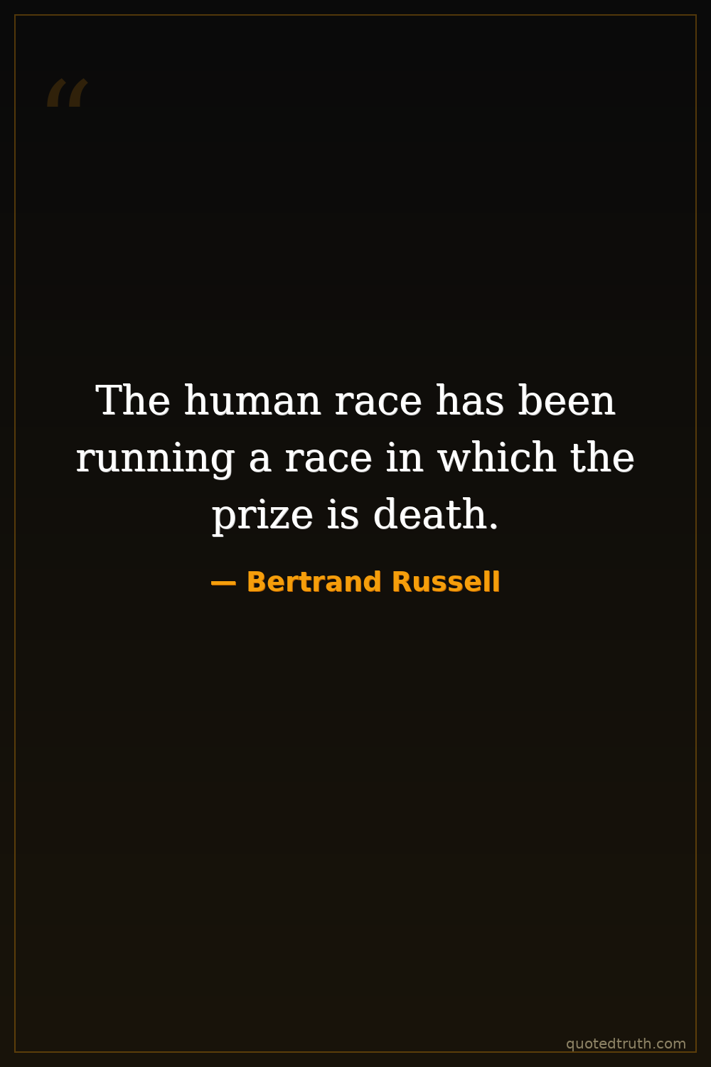 The human race has been running a race in which the prize is death.
