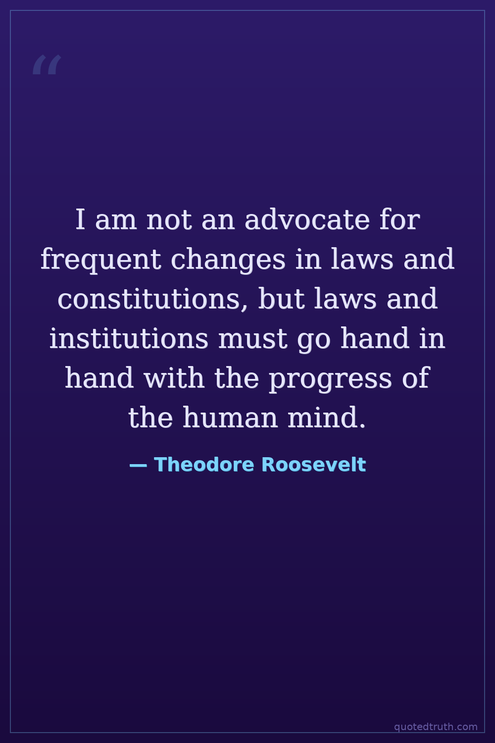 I am not an advocate for frequent changes in laws and constitutions, but laws and institutions must go hand in hand with the progress of the human mind.