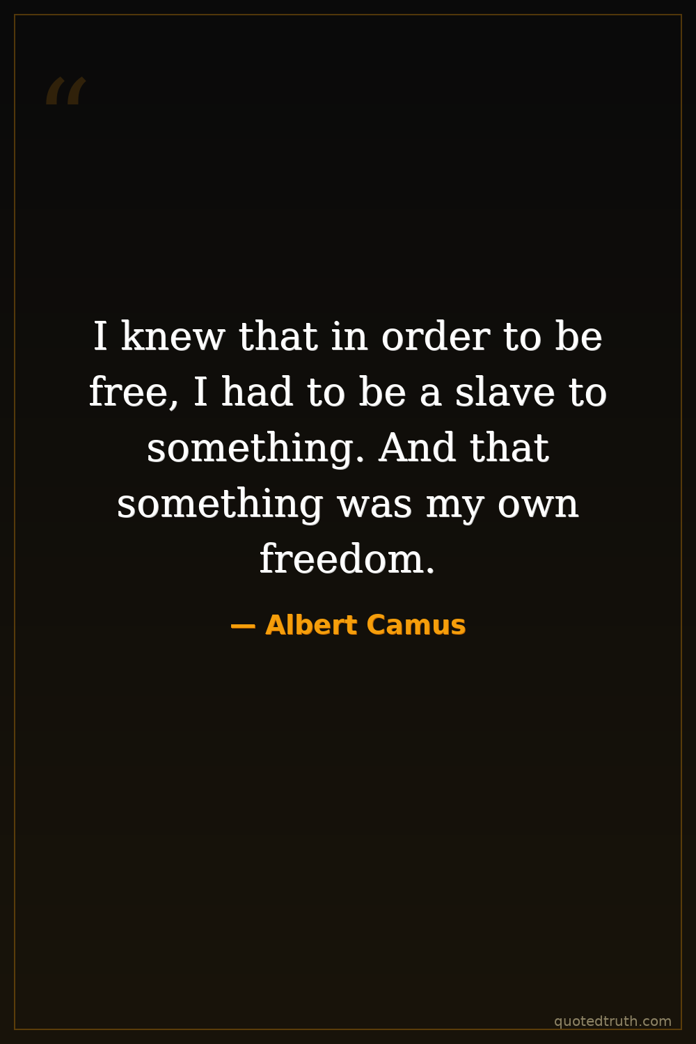 I knew that in order to be free, I had to be a slave to something. And that something was my own freedom.