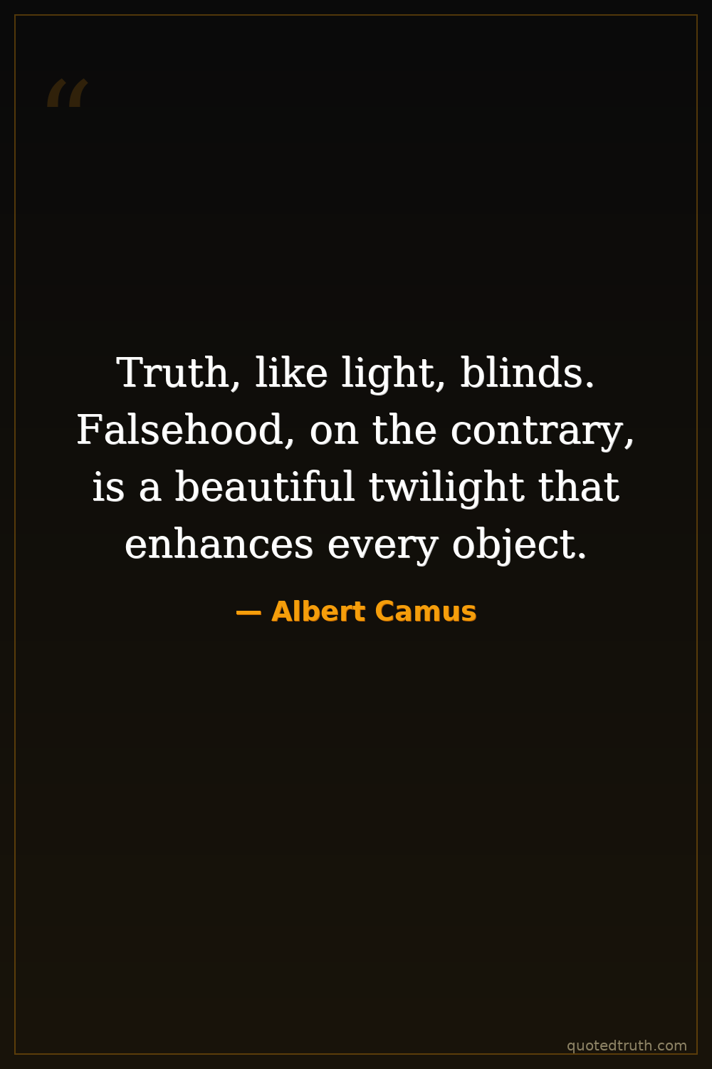 Truth, like light, blinds. Falsehood, on the contrary, is a beautiful twilight that enhances every object.