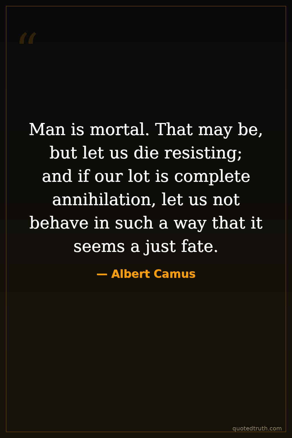 Man is mortal. That may be, but let us die resisting; and if our lot is complete annihilation, let us not behave in such a way that it seems a just fate.