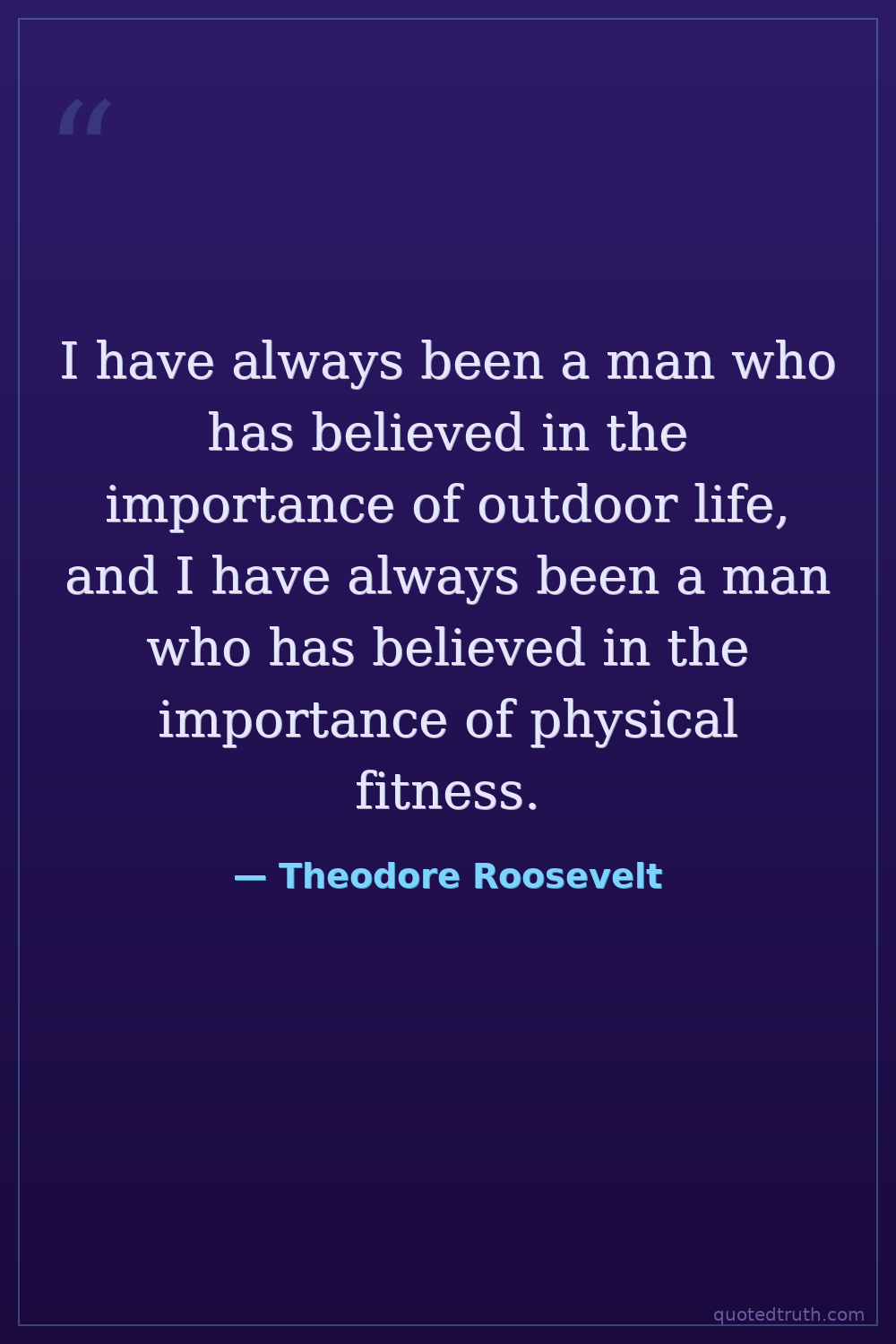 I have always been a man who has believed in the importance of outdoor life, and I have always been a man who has believed in the importance of physical fitness.