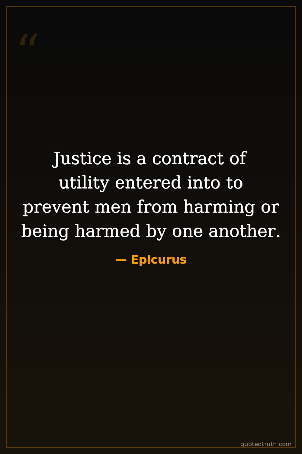 Justice is a contract of utility entered into to prevent men from harming or being harmed by one another.